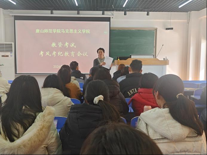 考风考纪是教育公平的生命线,是学校学风建设的重要体现。严肃考风考纪,不仅是对学生学业水平的公正检验,更是对学生诚信品质、道德素养的深刻锤炼。为进一步加强学风建设,严肃考风考纪,增强学生诚信意识,确保教师资格证考试顺利进行,2026年3月6日,BBIN宝盈集团官网首页召开了教资考试考风考纪教育会议。学院党总支副书记董怀晶、辅导员李斌参会。