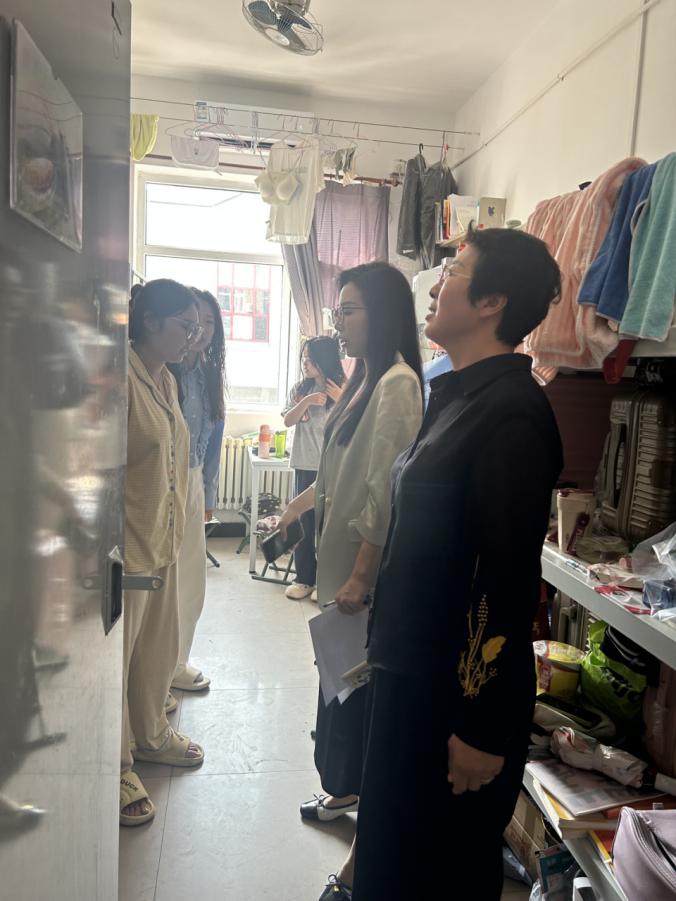 为确保国庆假期安全,加强学生宿舍安全管理,营造安全、整洁、和谐的生活氛围,2025年9月30日上午,BBIN宝盈集团官网首页党总支副书记董怀晶、学工办主任齐艳梅,团总支书记李思思深入BBIN宝盈集团官网首页学生宿舍开展了安全检查并探望留校学生。